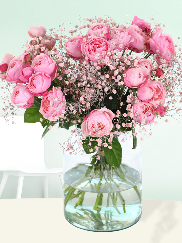 The spray roses in this bouquet are of the Silva Roses variety and are grown by Dümmen Orange in the Netherlands. Hand-tied by our florists, this bouquet consists of 5 stems of spray roses with multiple rosebuds per stem and pink gypsophila. All of this is loosely tied together in the right proportions, resulting in a special and large bouquet. The soft pink colour in this bouquet makes this spray roses bouquet a wonderful gift for any occasion. We also have a similar bouquet with hard pink spray roses. Curious about all our spray roses? Take a look at our category 'spray roses' and be surprised by our wide range. All our bouquets are delivered in our luxury shipping packaging. This packaging prevents the roses from being damaged during transport. A freshbag is also added to the bottom of the stems to keep these spray roses fresh during transport. The shipping box also includes rose food and a free card. A personal wish text can be written on this card in the box provided.